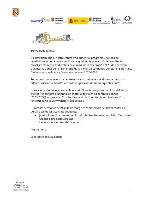Amb motiu del Dia de la Pau, la setmana passada vàrem realitzar un taller amb l’alumnat de 3r d’ESO en col·laboració amb el Fons Pitiús de Cooperació. La sessió va ser impartida per la nostra excompanya de l’institut, na Marta Roldán, que va treballar els… Llegeix més»