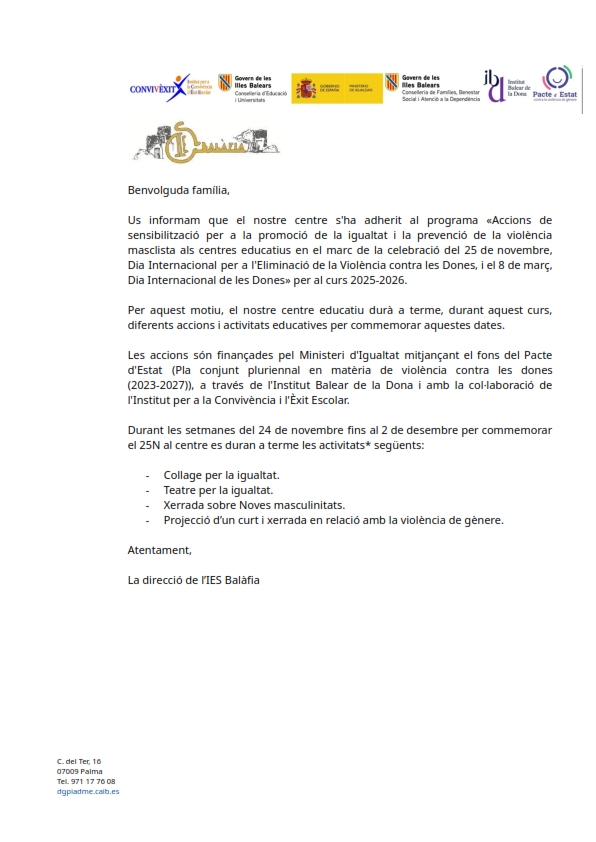Sota els lemes “IES Balàfia contra l’assetjament” i “Cuidem-nos i fem un institut… Llegeix més»